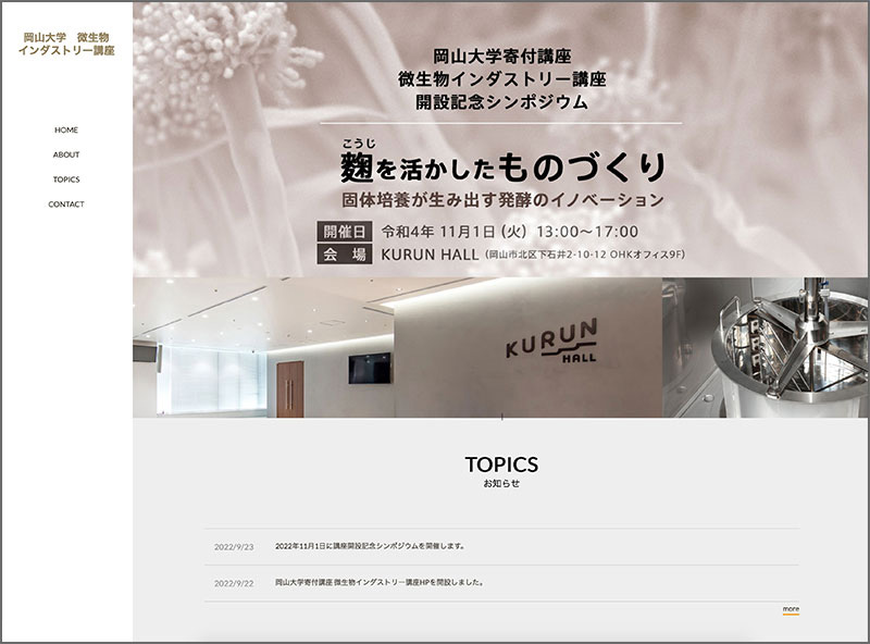 本講座は、日本に集積している微生物発酵技術・知識を、産学官連携による人材育成・地方創生・新たな技術開発の視点からさらに深化させ、微生物の力を産業利用する可能性を科学的に追求することを目的としています。